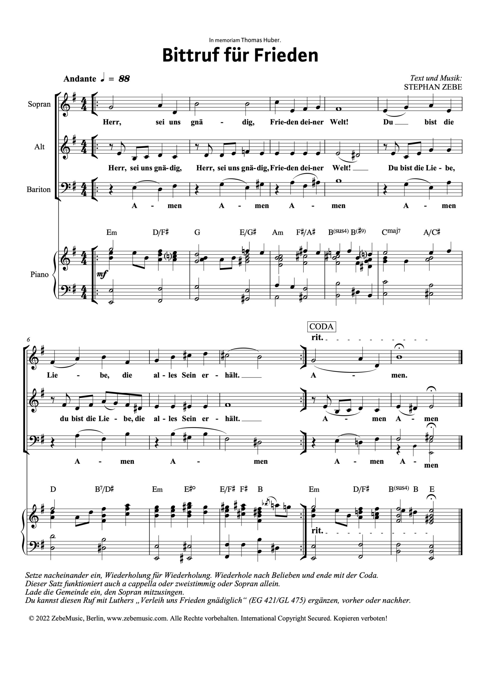 Einfacher dreistimmiger Turn-around mit der Bitte um Frieden in deutscher Sprache.