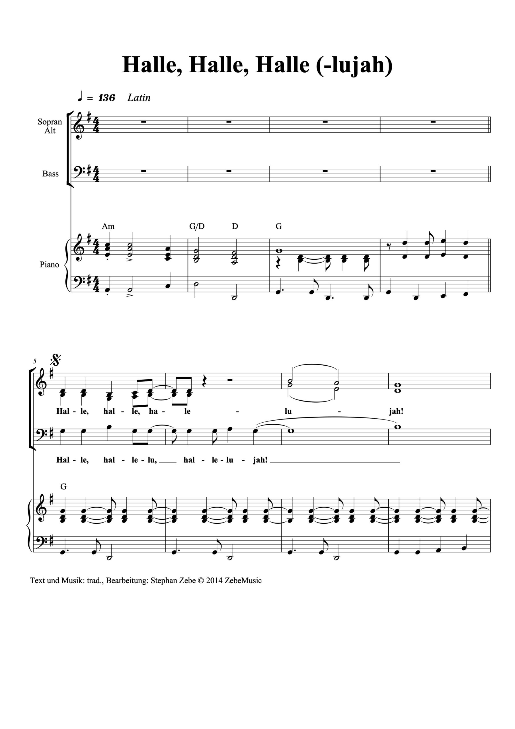 Populäres karibisches Hallelujah in einer Bearbeitung für gemischten Chor (SAB) von Stephan Zebe.