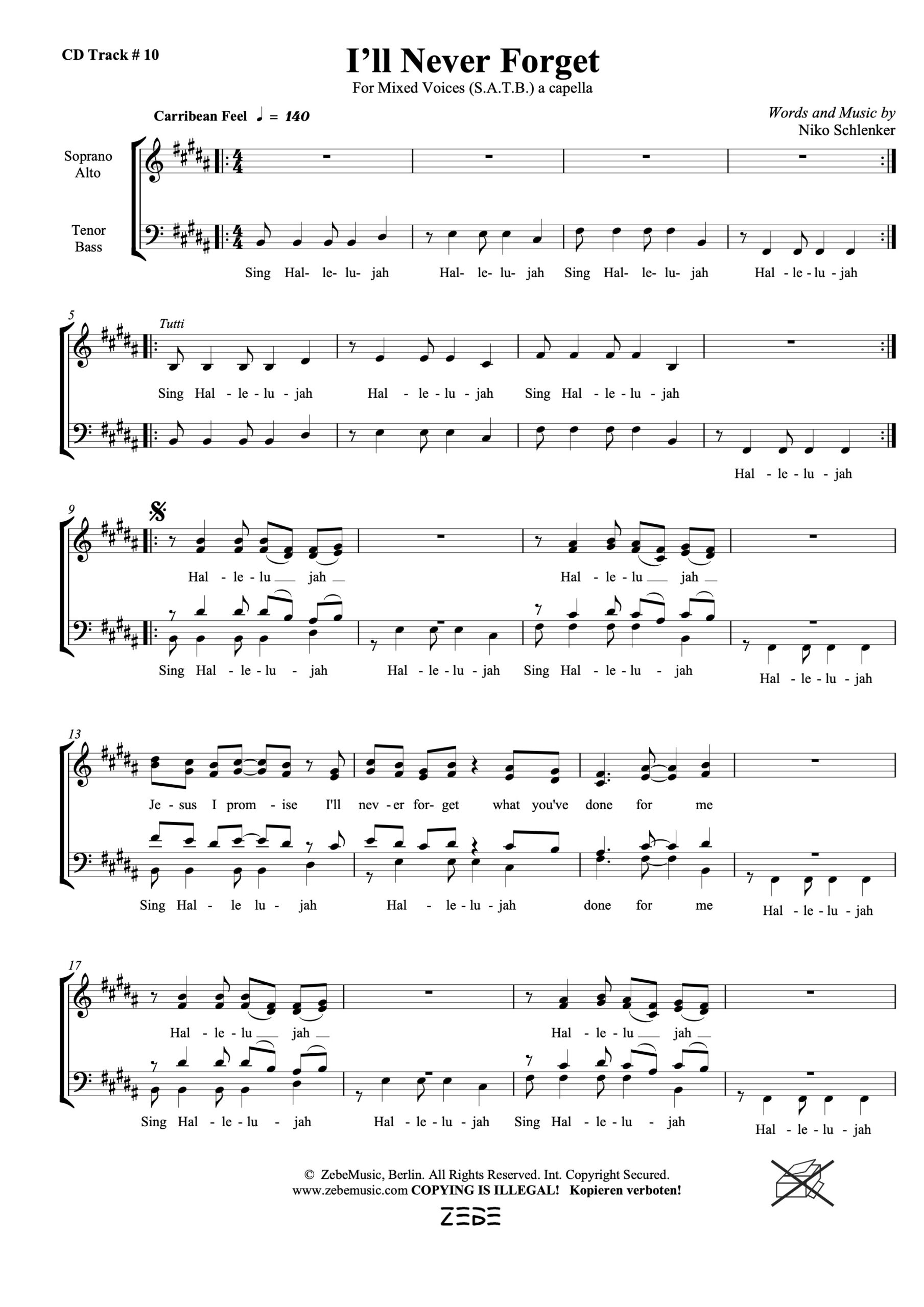 • SATB a cappella (ZE 4055) aus Sing Hallelujah! / New Day – New Song, Chorstimme gedruckt € 1,50 / PDF-Download, € 1,49