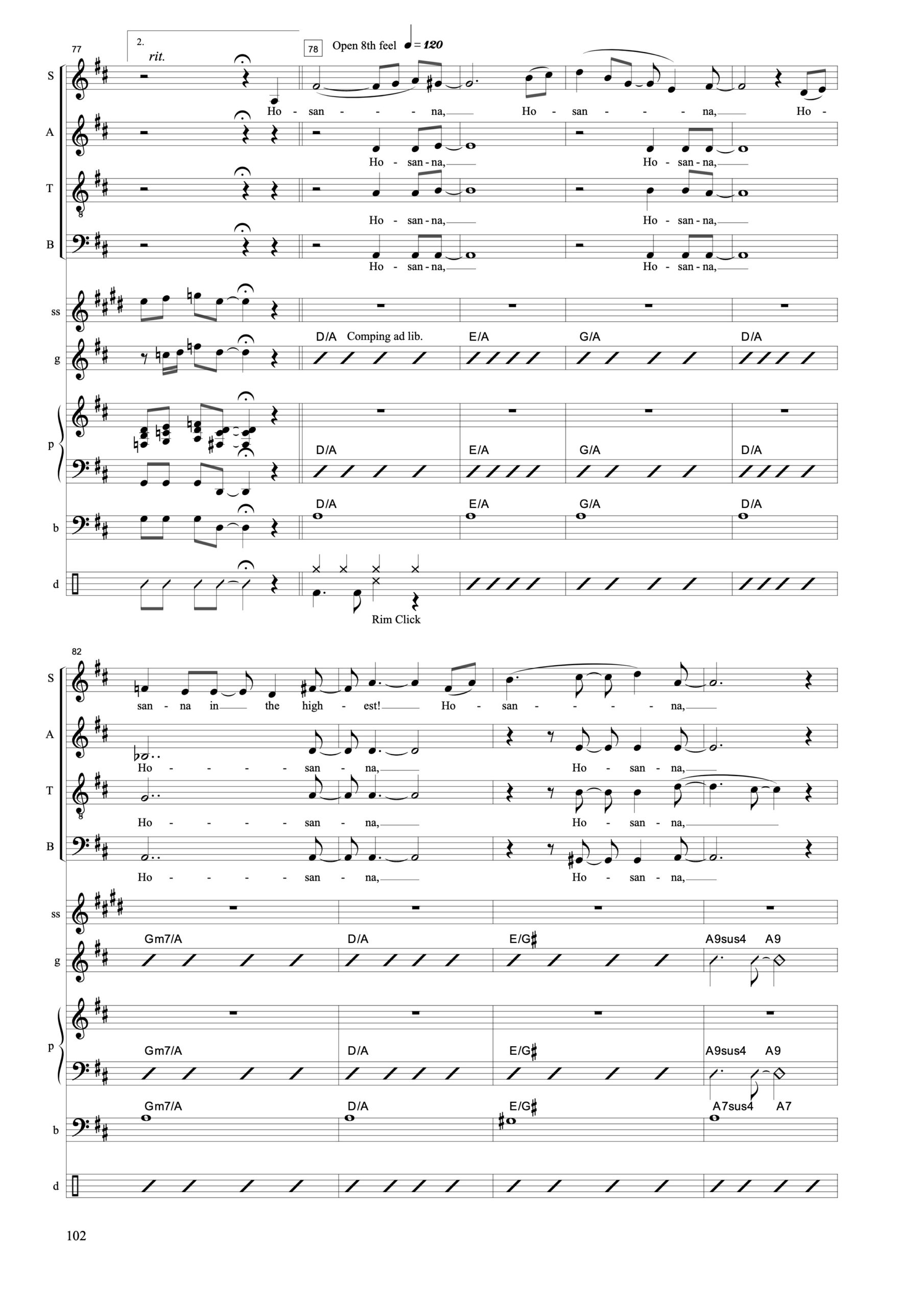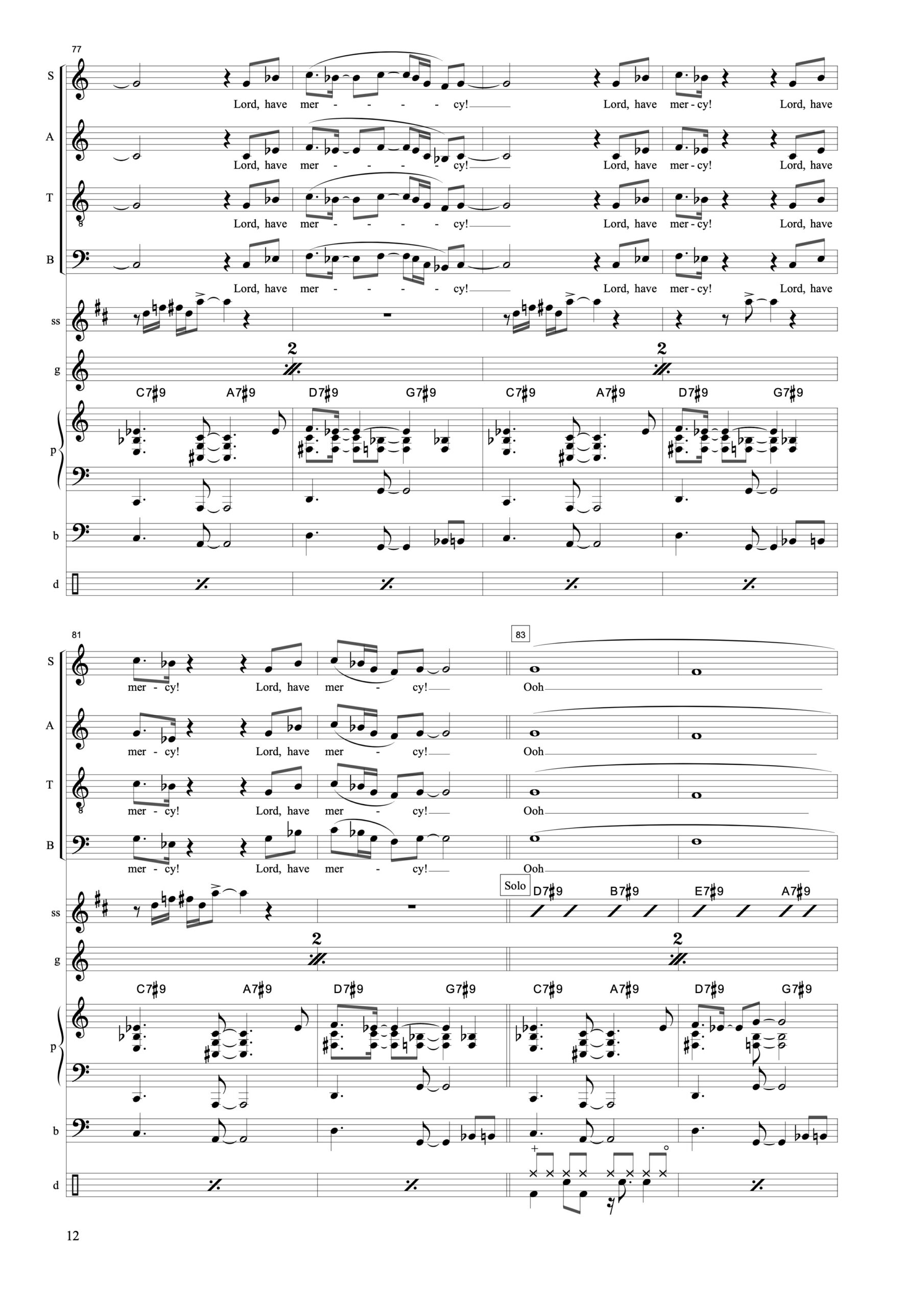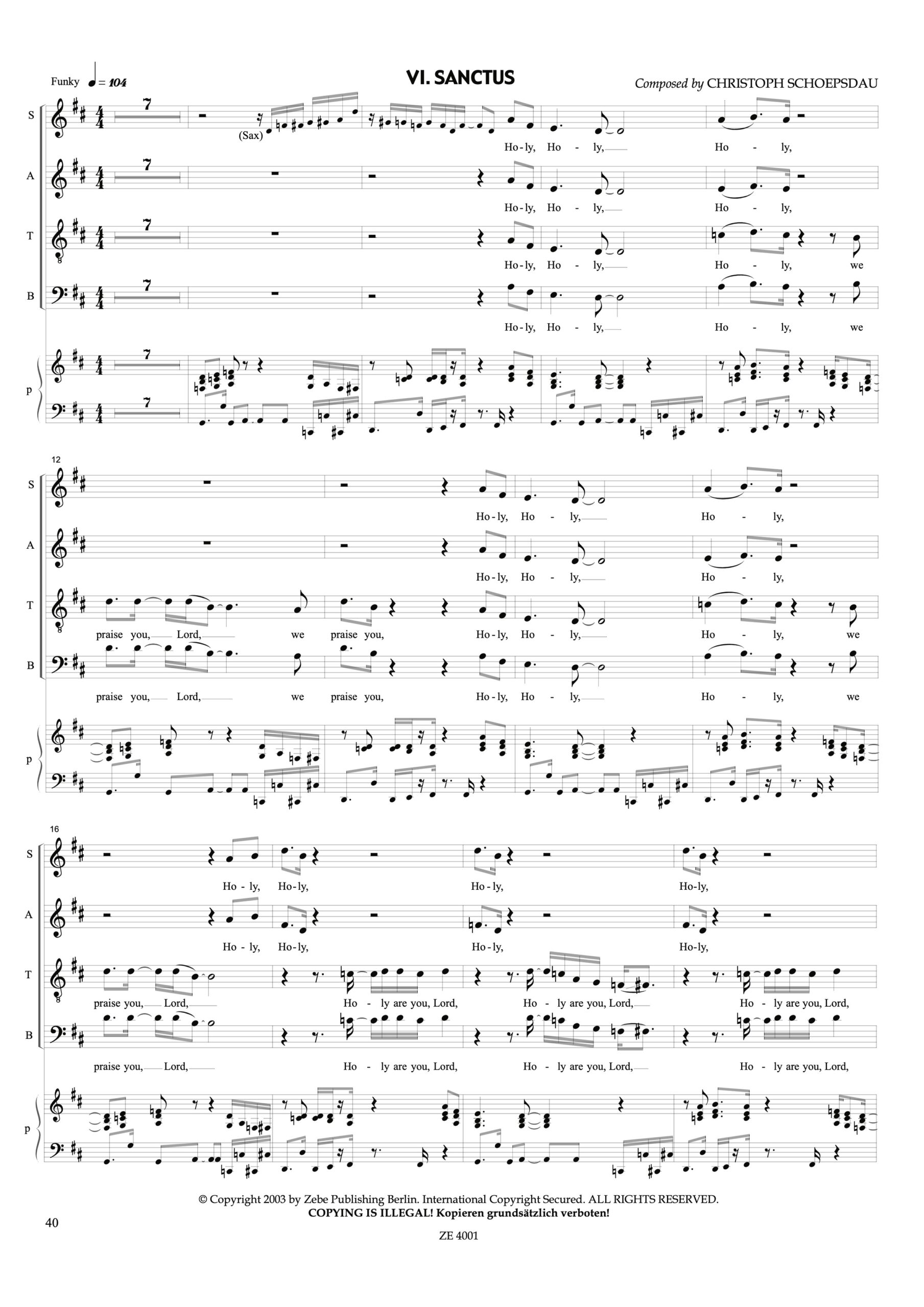 Besetzung: S.A.T.B., Dr, Kb, Pno, Git, Sop-Sax