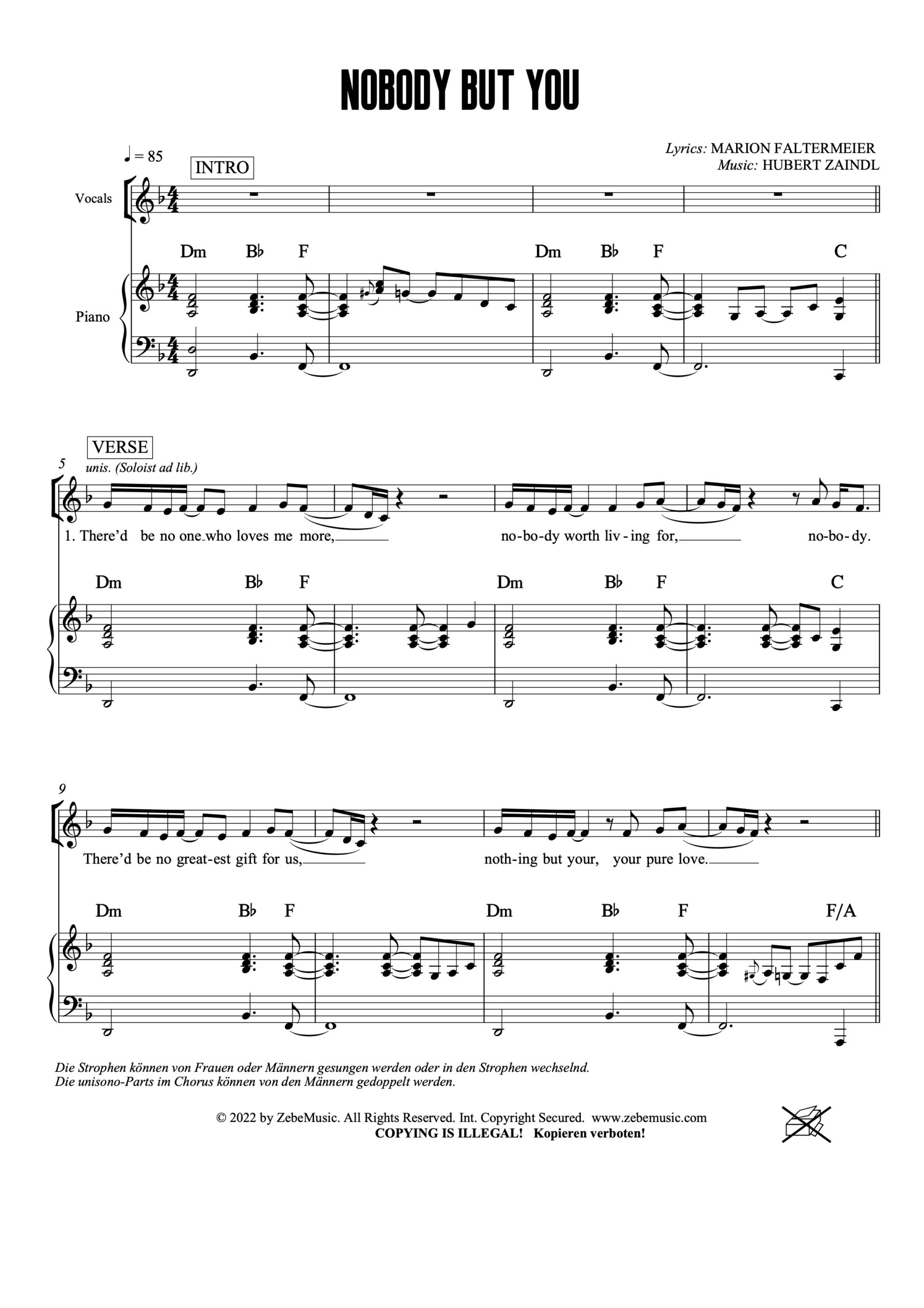 Im Notendownload sind ausgeschriebene Partitur mit Klavier und Akkordsymbolen sowie die Chorpartitur enthalten.
