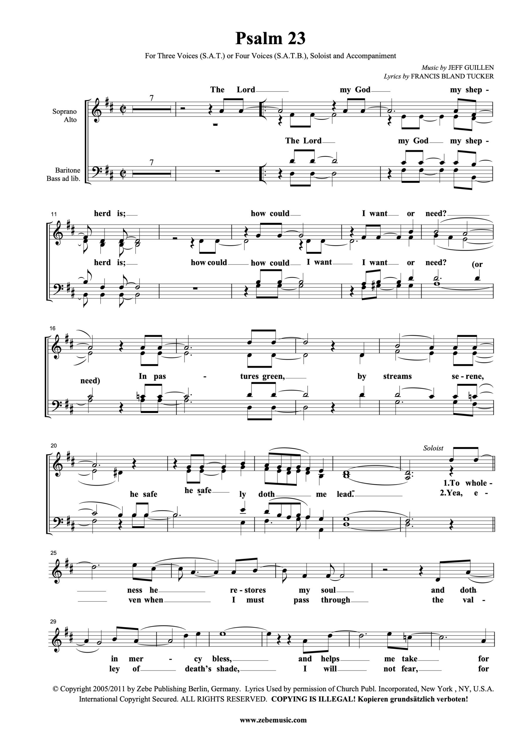 Die beliebte Gospel-Ballade zum 23. Psalms in der Fassung für gemischten Chor SAM/SATB oder Frauenchor SSA und Solostimme. Der Begleitsatz für Klavier ist ausnotiert.